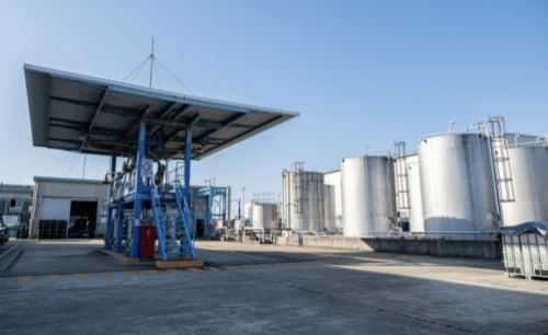 ダイセキ環境ソリューションのBDFは100%廃食用油を利用。EN14214、JIS K2390に適合した製品を大量かつ安定的に供給できる点に特長があります。「量産の秘訣は、2023年に導入したバイオ燃料精製では他に例を見ない膜分離施設によるものです。この施設はBDF精製で一般的に普及している蒸留施設を置き換えるもので、従来型の蒸留施設に比べて投下エネルギーが極めて小さく生産量1Lあたりで1/10以下と、LCAの面で極めて高い優位性があります」(水野氏)