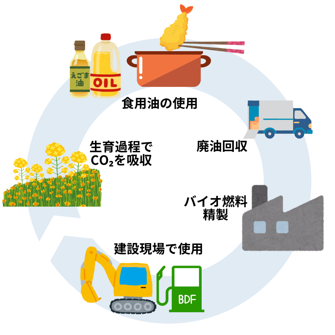 精製された100%バイオディーゼル燃料(B100)は、大阪・関西万博の工事に使用するクローラークレーンや発電機用の燃料としても使用されました。