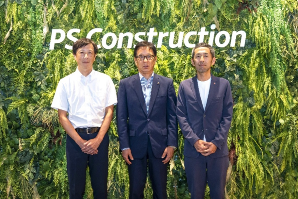 【写真中】ピーエス・コンストラクション株式会社 執行役員 【写真左】技術本部 技術研究所 所長 【写真右】サステナビリティ推進室 グループリーダー |