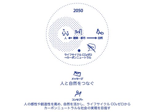 2005年の京都議定書発効を受けて、CO2削減の必要性は認識していましたが、ではどうやってやるのかという具体策がなかったのです。2010年に「環境コンセプトブック」の初版を公表するにあたって、「2050年の世界はどうなっているべきか」という議論をしまして、「2050年にゼロカーボン建築の実現を目指す」という目標を定めました。ゴールをみんなで共有して外部にも発信することで、我々が設計施工、技術開発で実現していくんだという姿勢を示したわけです。