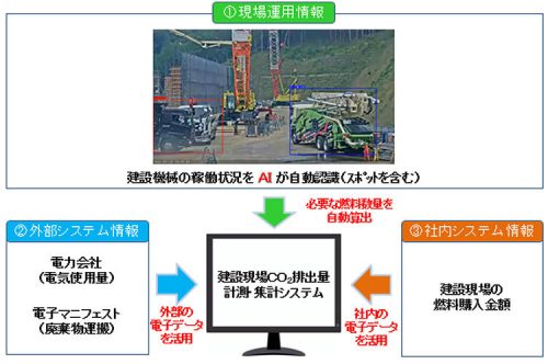 画像出典:大成建設「AIによる建設現場のCO2排出量計測・集計システムの開発に着手」