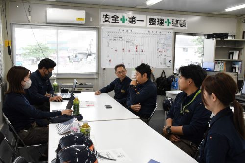 代表取締役社長の古郡栄一氏をはじめ、SDGs・ブランディング活動を推進するデザインマネジメント部の渡辺文昭氏、関矢祐葵氏、福島千紘氏、若手社員代表として土木部の三ツ井瑠星氏にお話を伺いました。