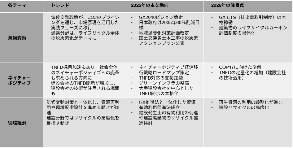 サステナビリティ 2025→2026:建設業が“今”整える制度・開示・現場実装