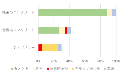 | 主原料 | 石灰石・骨材・水 | 高炉スラグ・フライアッシュ等 | 高炉スラグ・アルカリ活性剤 |